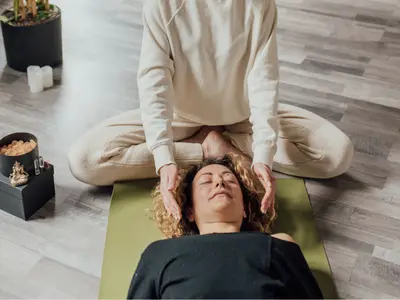 Aplicación de campanas tibetanas sobre el cuerpo para inducir una relajación profunda y restaurar la armonía interna.